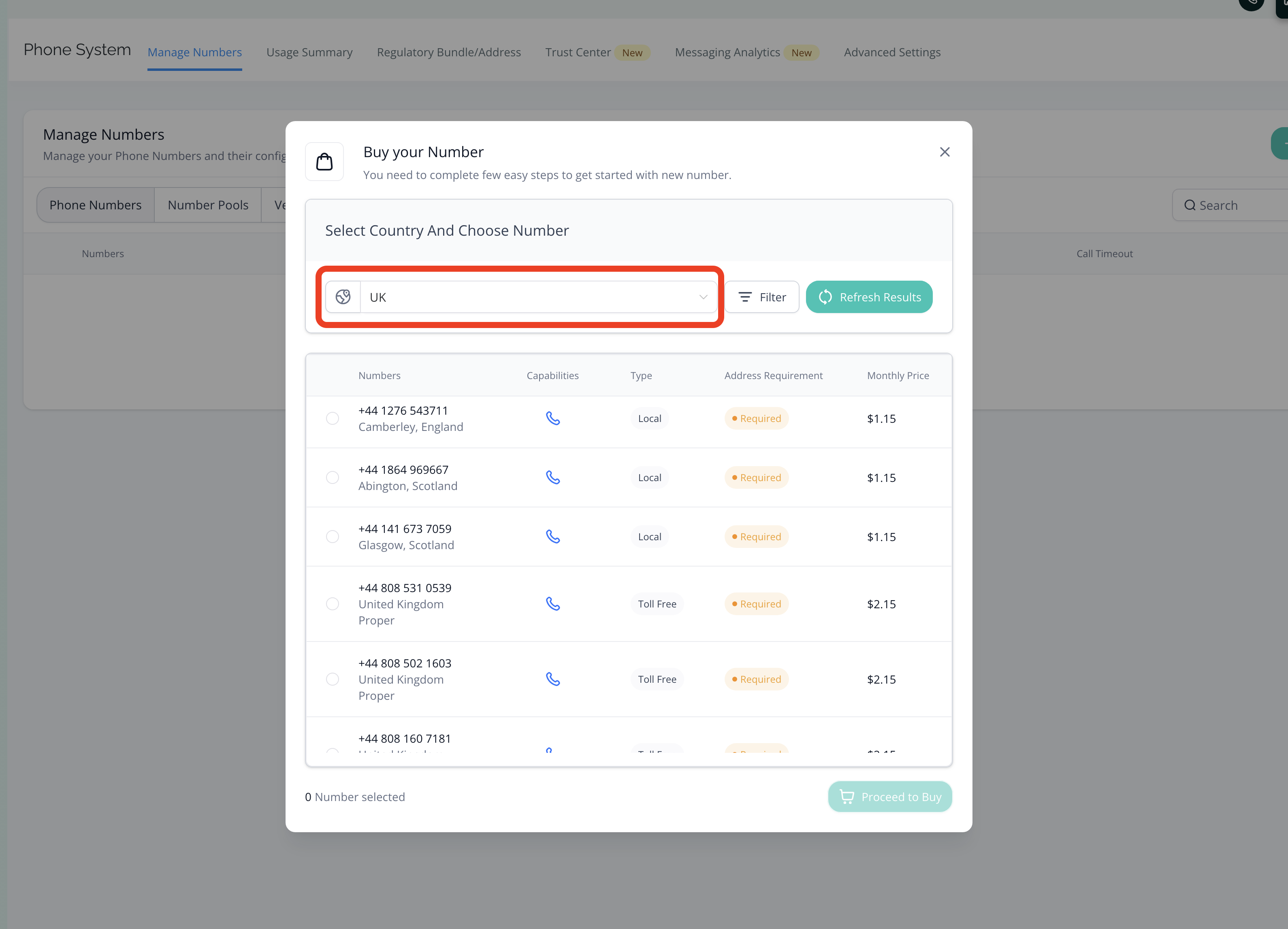 - You can choose your Number from the available list of Local or Toll Free numbers.