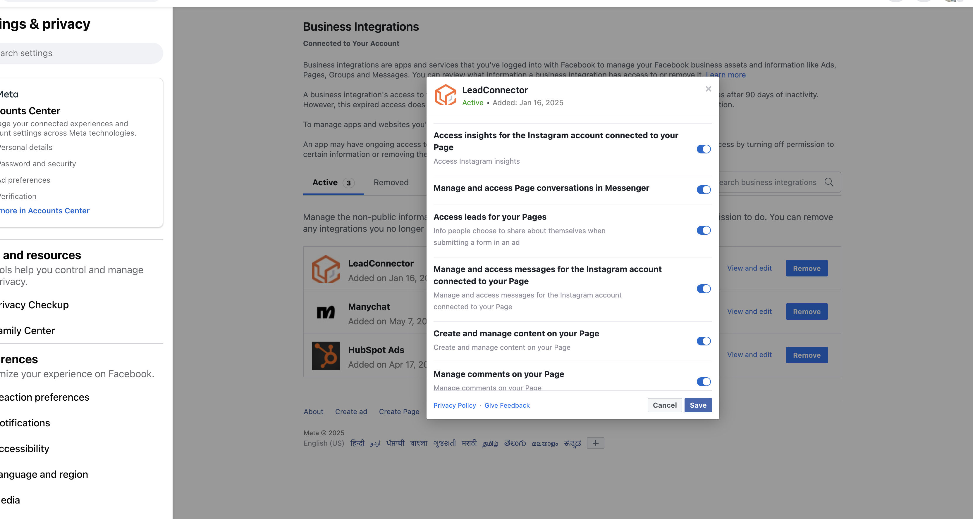 https://www.facebook.com/settings?tab=business_tools&ref=settingsLocate LeadConnector.