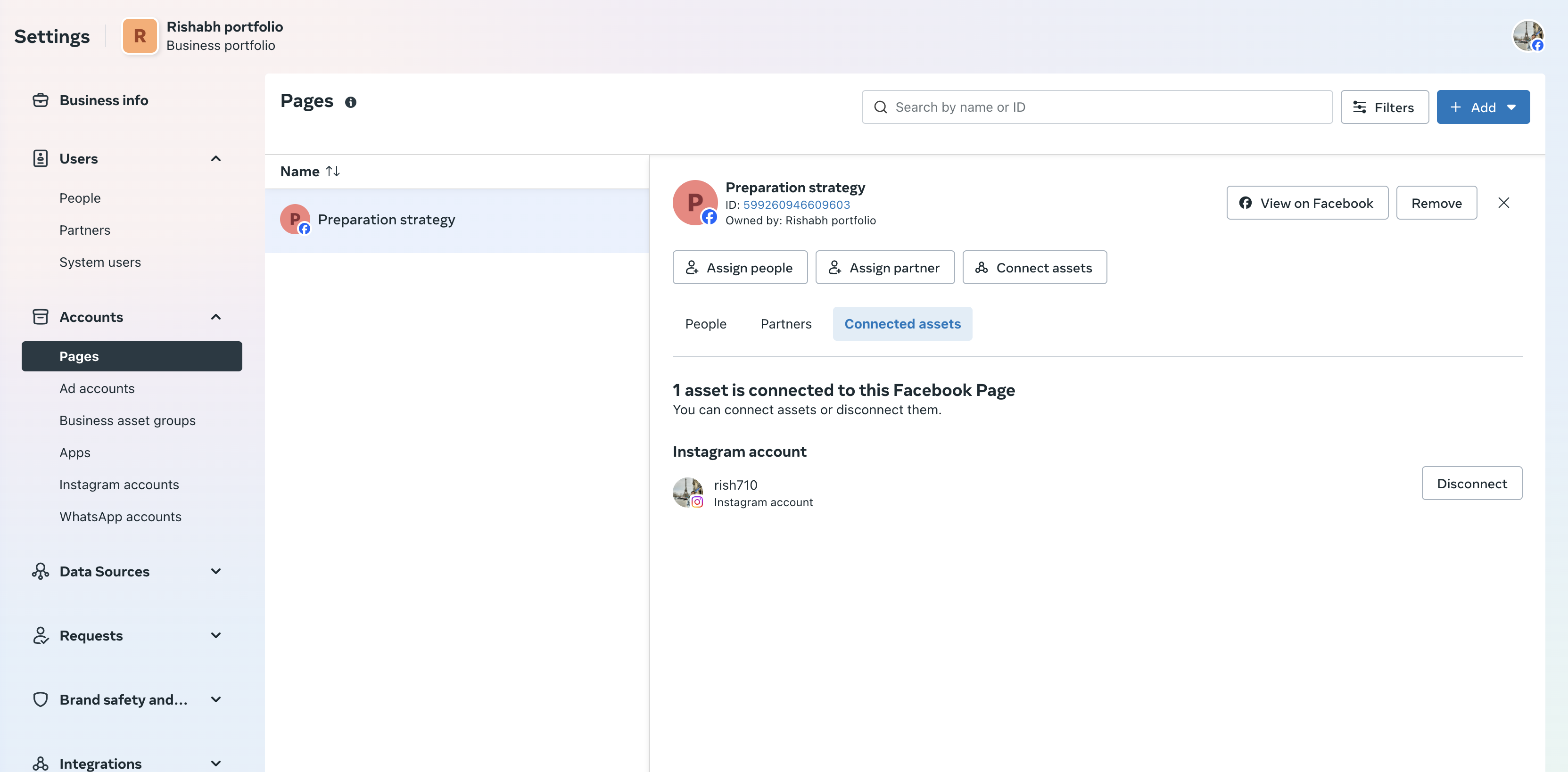 In Facebook Business Settings, open the connected Facebook Page.