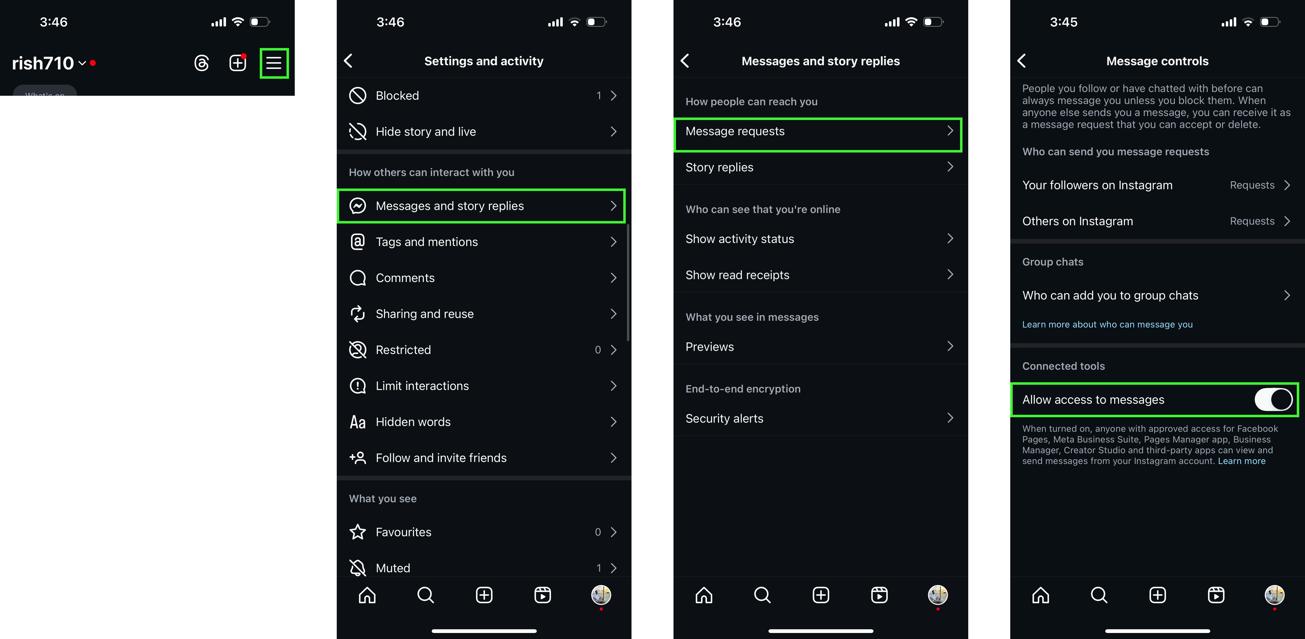Ensure Instagram messaging is enabled.